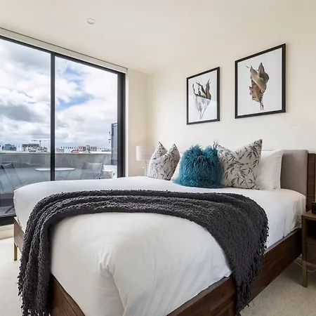 Vaquay Rooftops In Fitzroy Villa med 1 sovrum, som ligger ungefär 10 minuter med bil från Kungliga botaniska trädgården i Melbourne, erbjuder gästerna en solig uteplats där de kan koppla av.